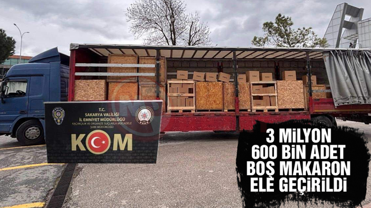 Yapılan aramada 3 milyon 600 bin adet boş makaron ele geçirilirken, şüpheli şahıs gözaltına alındı. Olayla ilgili inceleme başlatıldı.