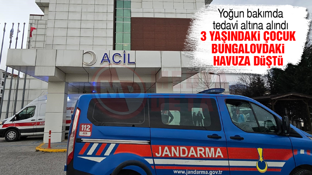 Sapanca İlçesi Mahmudiye Mahallesi’nde faaliyet gösteren bir bungalov tesisinde meydana gelen olayda, tesiste konaklayan D.Y. ve B.Y. isimli ailenin çocukları 3 yaşındaki İ.S.Y., havuza düştü. Durumu fark eden baba, çocuğu sudan çıkararak ilk müdahalede bulundu. İhbar üzerine olay yerine sağlık ekipleri sevk edildi. Küçük çocuk, Sapanca İlçe Devlet Hastanesi’ne kaldırılarak yoğun bakımda tedavi altına alındı. İ.S.Y.’nin hayati tehlikesinin bulunduğu öğrenilirken, olayla ilgili inceleme başlatıldı.
