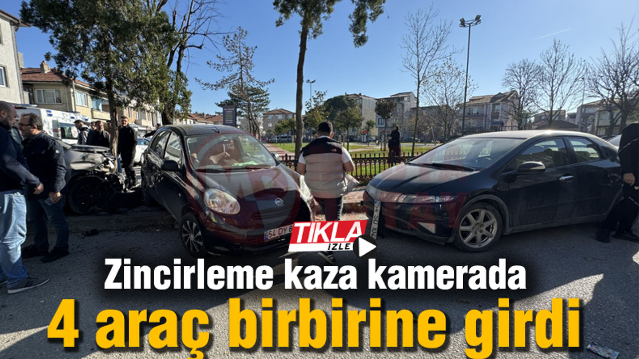 Kaza anı ise bölgede bulunan bir iş yerinin güvenlik kamerasına yansıdı. Görüntülerde, 54 HH 8** plakalı otomobilin, caddeye kontrolsüz bir şekilde çıkması ve 54 AJK 1** plakalı hafif ticari araç ile çarpıştığı anlar yer aldı. Daha sonrasında, savrulan 54 AJK 1** plakalı hafif ticari aracın ise yol kenarında park halinde bulunan diğer iki otomobile çarptığı anlar görüldü. Kazayı gören çevredeki vatandaşların da kazazede vatandaşların yardımına koştuğu anlar görüntülere yansıdı.