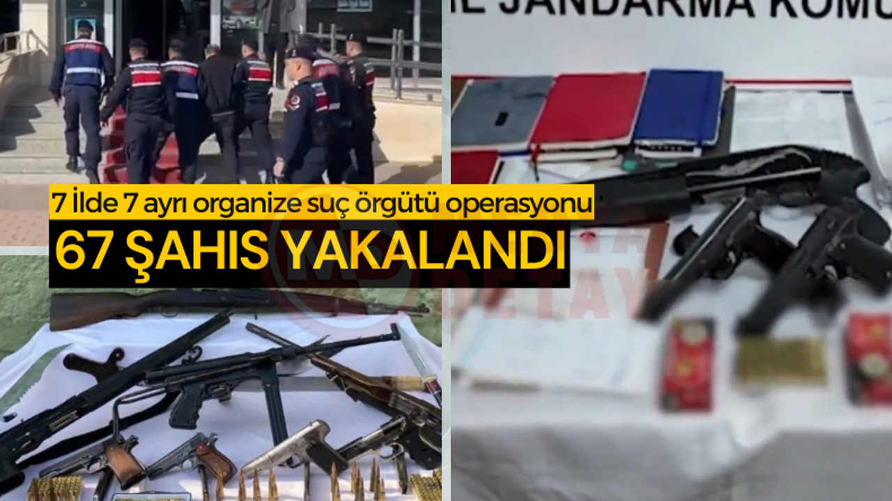 Bakan Yerlikaya, operasyona ilişkin sosyal medya hesabından yaptığı paylaşımda, "7 İlde 7 ayrı organize suç örgütüne yönelik son 1 haftadır Jandarmamız tarafından devam eden operasyonlarımızda 67 şüpheliyi yakaladık. 47'si Tutuklandı, 14'ü hakkında adli kontrol hükümleri uygulandı. Diğerlerinin işlemleri devam ediyor" açıklamalarında bulundu.