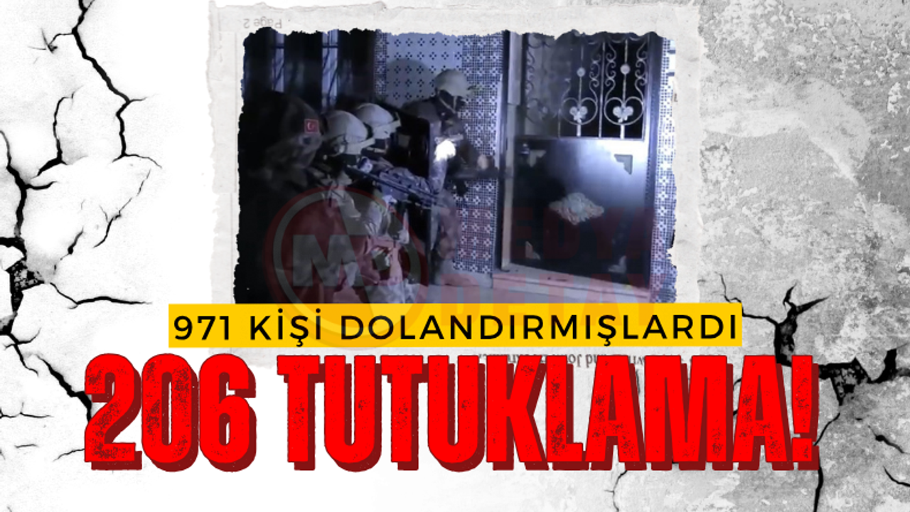İçişleri Bakanı Ali Yerlikaya sosyal medya hesabından yaptığı paylaşımda, 971 kişiyi dolandıran suç şebekesine yönelik operasyonda 206 kişinin tutuklandığını kaydetti. Bakan Yerlikaya, şüphelilerin banka hesaplarında 5 milyar 34 milyon lira işlem hacmi bulunduğu tespit edildiğini açıkladı.