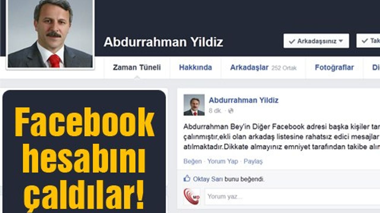 Abdurrahman Yıldız, yakınlarını ve arkadaşlarını facebook hesabının çalınmasının ardından uyararak, mesajların kendisi tarafından gönderilmediğini ve dikkate alınmaması gerektiğini söyledi. Yıldız’ın hesabını çalan kişi ya da kişilerin belirlenmesi için emniyet tarafından da çalışma başlatıldığı öğrenildi.