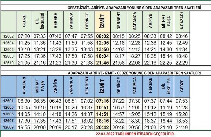 Ada ekspresinin saatleri değiştirildi. Adapazarı Ekspresi'nde güzergahlar; Gebze, Diliskelesi, Hereke, Yarımca, Derince, İzmit, Derbent, Sapanca, Arifiye, Mithatpaşa ve Adapazarı şeklinde. Gebze-Adapazarı, Adapazarı-Gebze tren seferlerinde saatler değişti.