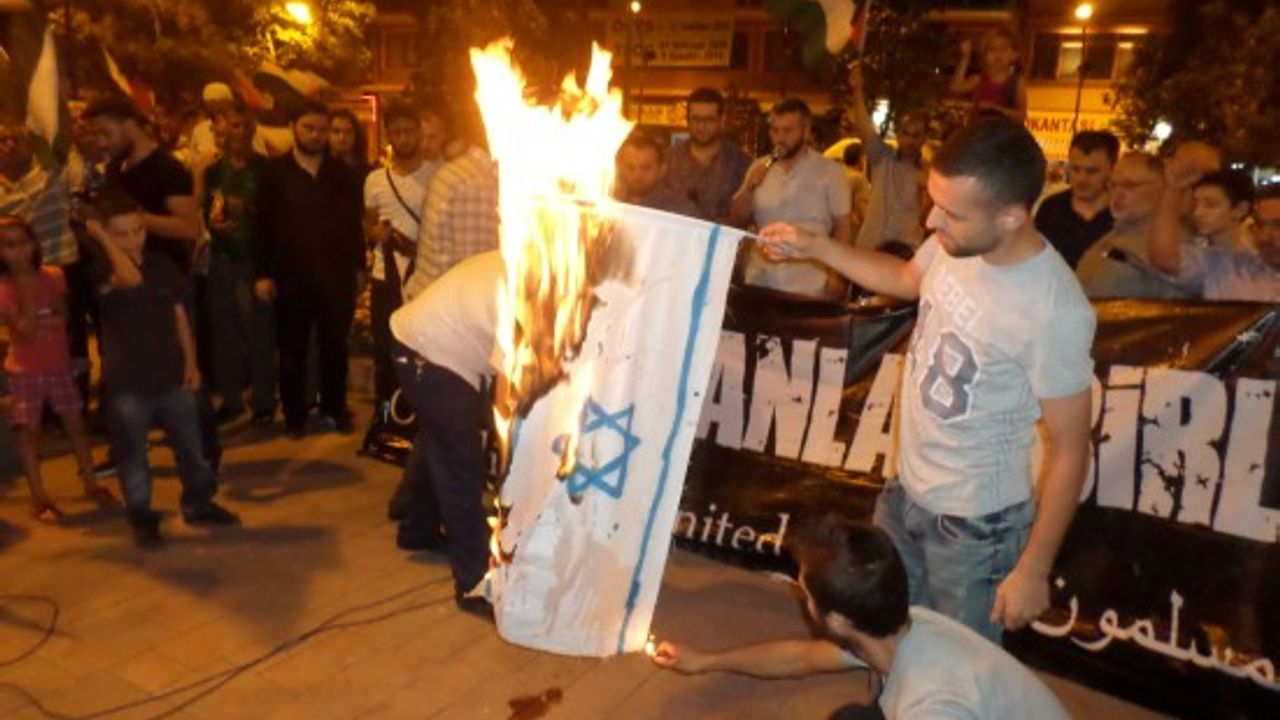 İsrail'in özellikle iftar ve sahur saatlerinde saldırı düzenlediğini anlatan Öztopaloğlu, şunları söyledi: "Karşımızda Ramazan ayını cehenneme çevirmekten haz alan, kadın ve çocuk öldürmekten haz alan, aşağılık bir zihniyet var. Milletimiz bu gidişatın farkına varmalıdır. 'Kahrolsun İsrail' demekle İsrail kahrolmaz. İsrail ancak güçten anlar. Tüm dünyanın başında, bir musibet olan İsrail, işgal ettiği topraklardan sökülüp atılacaktır. Bunun yolu İslam Birliğidir. Türkiye’nin yeri Avrupa Birliği değil İslam Birliğidir. İsrail küstahlığının, şımarıklığının, aşağılık davranışlarının karşılığı er geç bulacaktır.” Basın açıklamasının ardından İsrail bayrağı yakıldı. Grup daha sonra sloganlar atarak olaysız dağıldı. /İHA