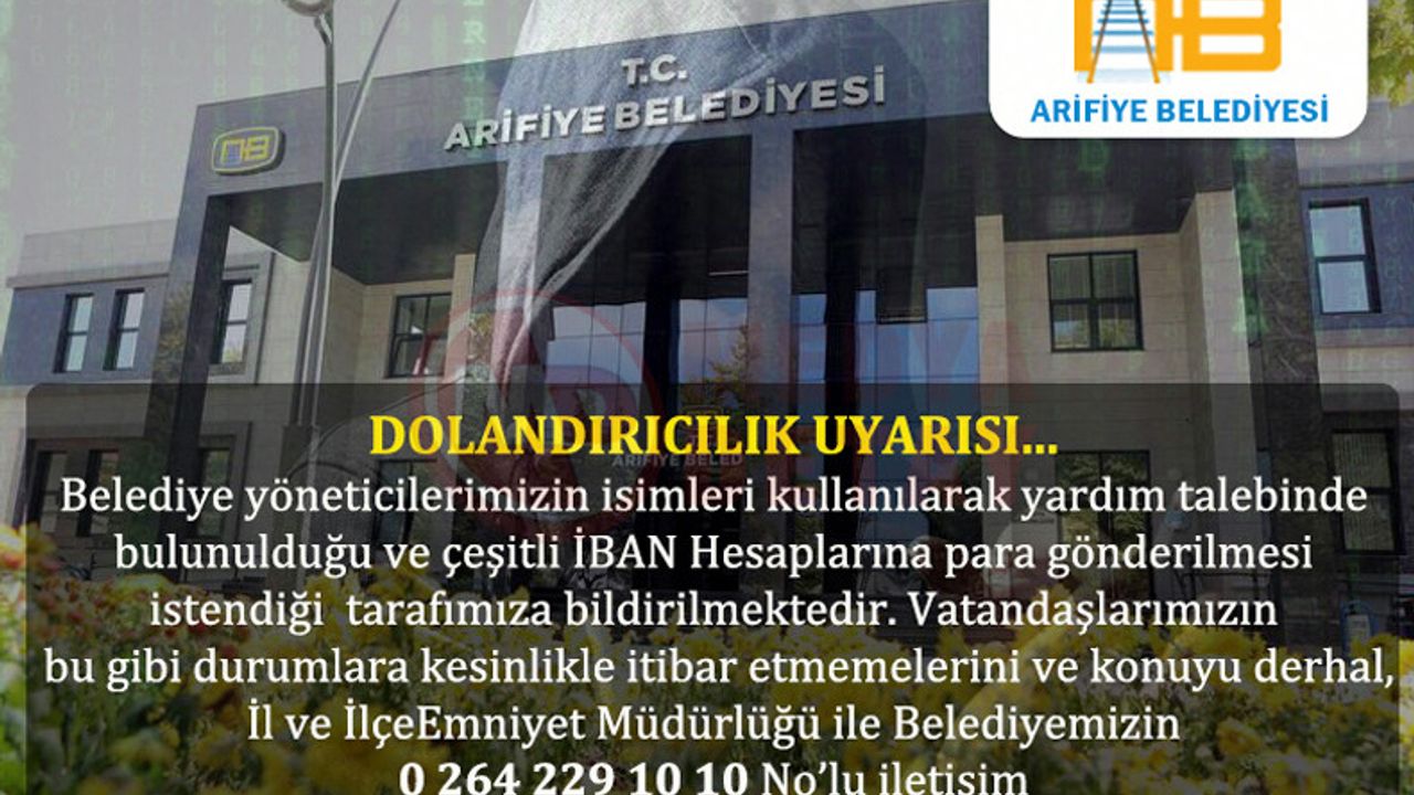 Arifiye Belediyesi’nden yapılan açıklamada, dolandırıcılık girişimlerine karşı yasal işlemlerin başlatıldığı ifade edildi.