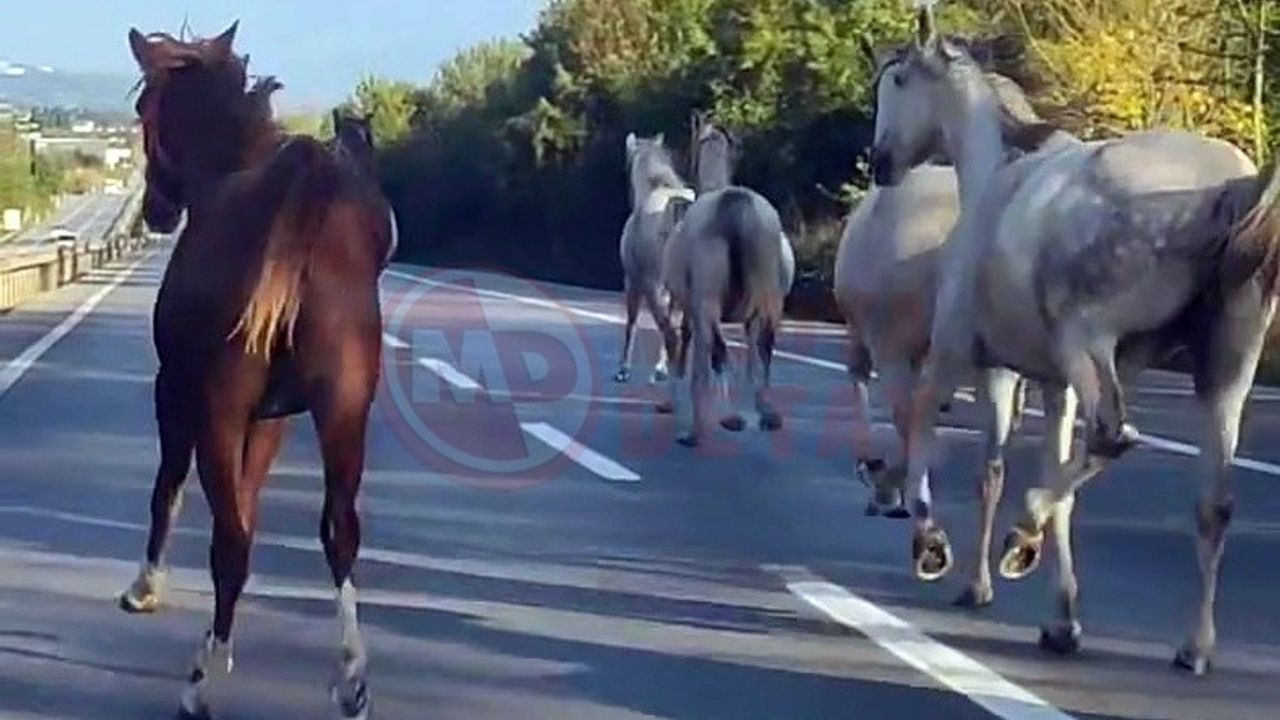 D-100 karayolunun Sakarya ve Kocaeli kesiminde meydana gelen olayda, yola inen atlar dörtnala koşmaya başladı.