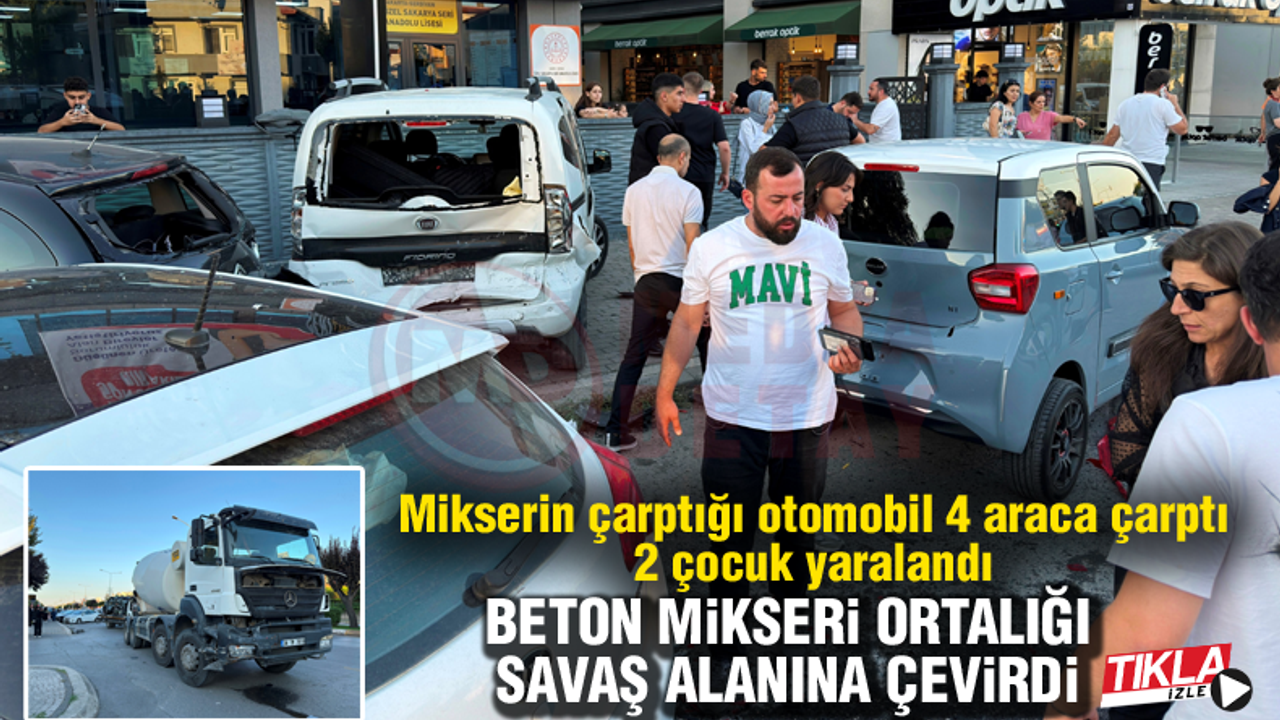 Serdivan ilçesi Muhsin Yazıcıoğlu Bulvarında meydana gelen kazada, yol kenarında duran 54 ALV 392 plakalı otomobile, L.Ö.'nün kullandığı 34 TM 7819 plakalı beton mikseri çarptı. Çarpmanın şiddetiyle kontrolden çıkan otomobil, park halindeki 06 DEA 050, 54 BE 892, 34 ENK 230 ve 34 PKE 03 plakalı araçlara çarptı. Kazada kağıt gibi ezilerek hurdaya dönen 54 ALV 392 plakalı otomobilde bulunan A.U.G. (11) ve A.A.G. (7) isimli 2 çocuk hafif şekilde yaralandı. Yaralı çocuklar hastaneye kaldırılırken, polis kazayla ilgili inceleme başlattı.