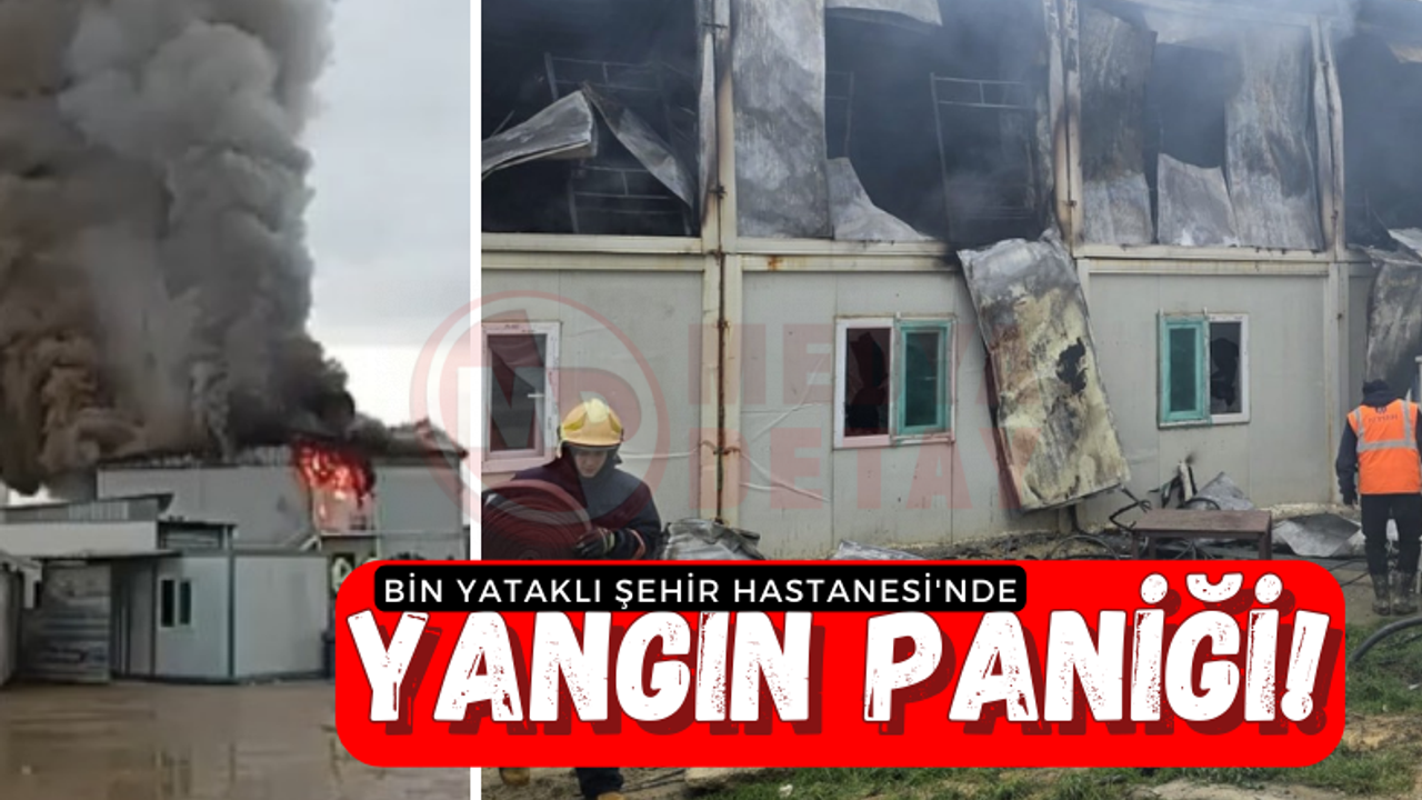 Alandüzü’nde yapımı süren bin yataklı hastanede çalışan işçilerin kaldığı konteynerde yangın çıktı.