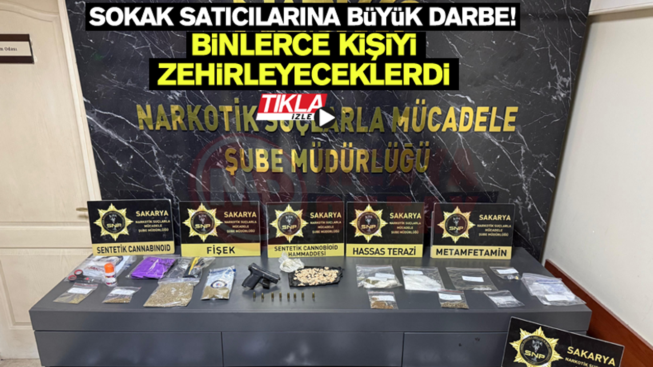 Sakarya Cumhuriyet Başsavcılığı koordinesinde Sakarya Emniyet Müdürlüğü ekiplerince 1 Ekim Çarşamba günü Adapazarı, Erenler, Serdivan, Söğütlü ilçeleri ile Kocaeli'de sokak satıcılarına yönelik operasyon düzenlendi. Özel Harekat ve İHA destekli, 42 ekip ve 194 personelin katıldığı operasyonda 14 şüpheli yakalandı. Şahısların ikametlerinde yapılan aramalarda; 52 bin içimlik peçeteye emdirilerek hazırlanan 13 adet mor peçete, 48.70 gram sentetik cannabinoid hammaddesi, 8 parça halinde 64.51 gram metamfetamin maddesi, 3 parça halinde 62.25 gram sentetik cannobinoid maddesi, 44.10 gram bonzai yapımında kullanılacak olan mercan otu, 2.83 gram skunk maddesi, 1 adet sentetik ecza ilacı, 0.26 gram esrar maddesi, 1.76 gram bonzai yapımında da kullanılacak olan tütün, 1 kutu aseton maddesi, 1 adet hassas terazi, 1 adet ruhsatsız tabanca, 1 adet ruhsatsız pompalı tüfek, 8 adet fişek, uyuşturucu madde ticaretinden elde edildiği değerlendirilen 19 bin 90 lira, 2 adet uyuşturucu madde tasnifinde kullanıldığı değerlendirilen makas, 1 adet uyuşturucu madde satışında miktar olarak kullanılan çay kaşığı ele geçirildi.
