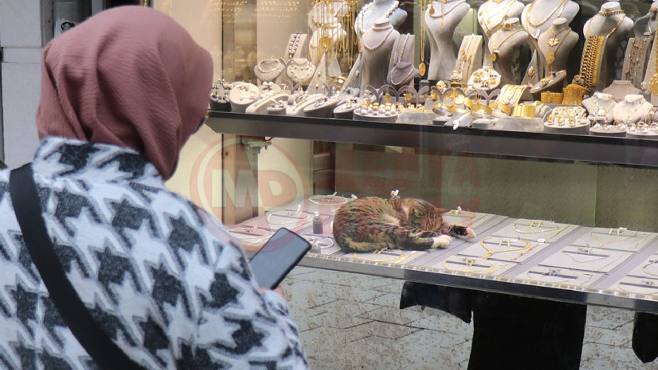 Sakarya'nın en eski ticaret merkezlerinden biri olan Uzun Çarşı'da dedesinden kalan kuyumculuk mesleğini sürdüren 3. kuşak esnaf Recep Odabaş, dükkanının önünde 3 yıl önce yaralı halde bulduğu bir kediyi sahiplendi. Sakatlığını giderip karnını doyurduğu kediye ‘Şaziye' ismini veren Odabaş, o günden sonra kedinin kendisini hiç bırakmadığını anlattı. Her sabah dükkanı açmak için gelen Odabaş'ı kapıda bekleyen Şaziye, kapı açılır açılmaz içeri koşarak vitrindeki altın takıların arasında kendine yer ediniyor.