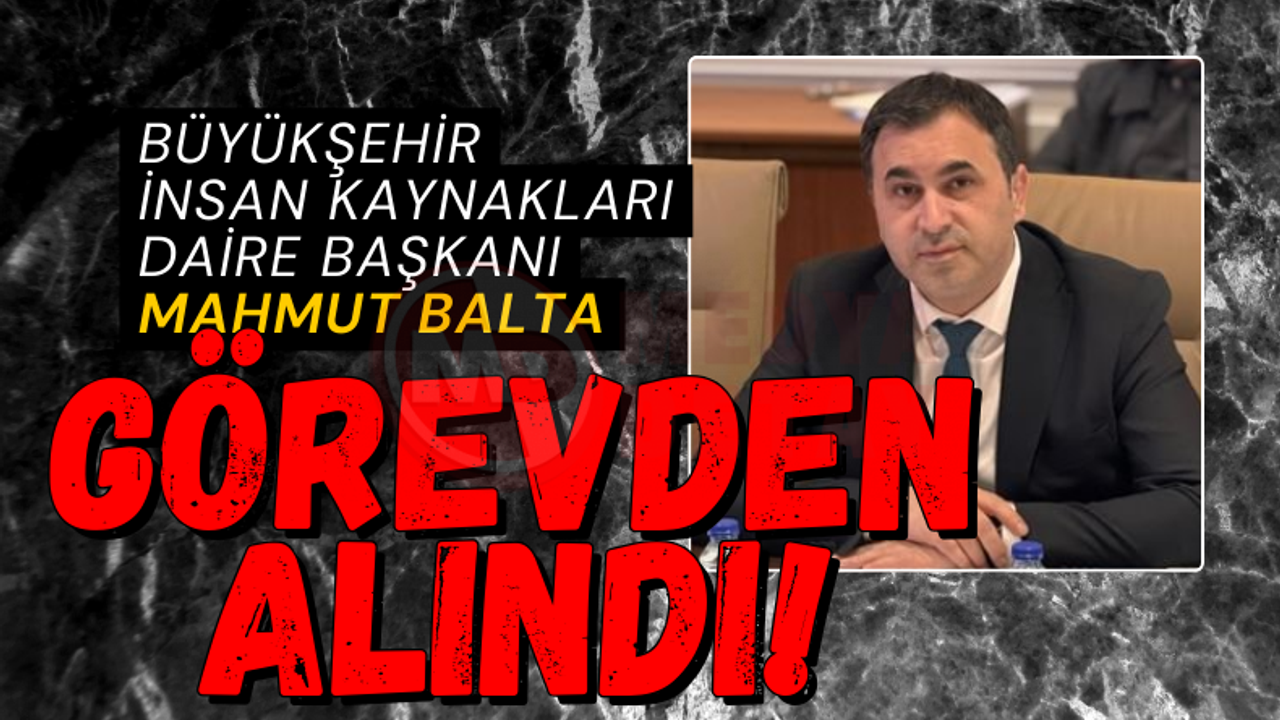 Alınan son dakika bilgisine göre İnsan Kaynakları ve Eğitim Dairesi Başkanı Mahmut Balta'nın görevinden alındığı öğrenildi.