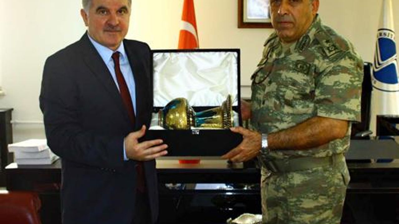 Ziyaretin ardından Tuğgeneral Orhan Çınar’a, SAÜ Rektörü Prof. Dr. Muzaffer Elmas tarafından hediye takdim edildi.