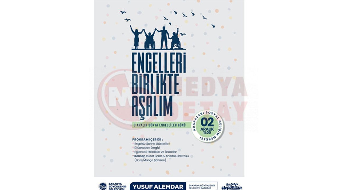 Sakarya Büyükşehir Belediyesi, 3 Aralık Dünya Engelliler Günü kapsamında anlamlı bir etkinliğe imza atıyor. Sosyal Hizmetler Dairesi Başkanlığı Engelli Hizmetleri Şube Müdürlüğü tarafından düzenlenen programda, “Engelleri Birlikte Aşalım” sloganıyla düzenlenecek etkinlikler, 2 Aralık Salı günü saat 11.00’da Sosyal Gelişim Merkezi’nde (SGM) gerçekleştirilecek.