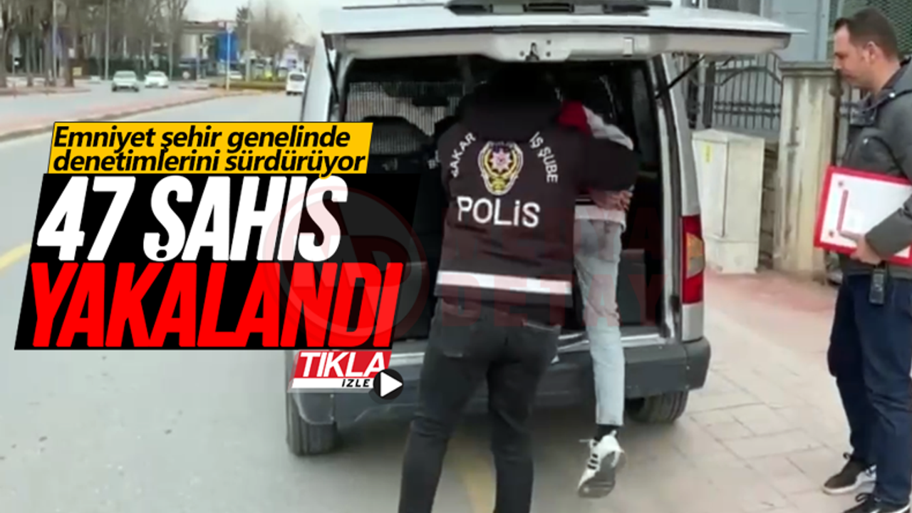 Yapılan kontrollerde, 0-5 yıl arası hapis cezası bulunan 42 şahıs, 5-10 yıl arası hapis cezası bulunan 3 şahıs ile kasten adam öldürme suçundan 13 yıl 3 ay kesinleşmiş hapis cezası bulunan 1 şahıs ve hırsızlık suçundan 28 yıl 9 ay 9 gün kesinleşmiş hapis cezası olan 1 şahıs olmak üzere toplam 47 şahıs yakalandı.