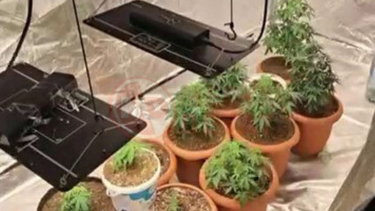 Yapılan aramalarda, 13 adet saksı içerisinde 15 adet (5-30 cm) Hint keneviri, kurtulmaya bırakılmış bir miktar kenevir bitkisi, kenevir yetiştirmede kullanılan 1 adet çadır, muhtelif sıvı ve toz halinde gübreler, 4 adet LED armetür, budama için kullanılan makas, 2 adet havalandırma fanı, 1 adet zamanlayıcı piriz, 1 adet nemlendirme cihazı, 1 adet ilaçlama spreyi ve yetiştirmede kullanılan bitki toprağı ele geçirildi.