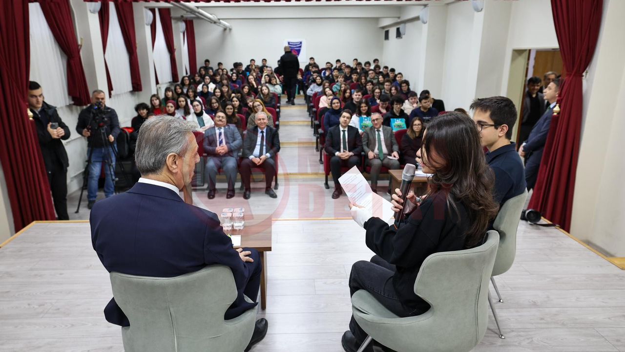 Programda konuşan Okul Müdürü İsmail Hanlı, “Yusuf Başkanımızı okulumuzda ağırlamaktan büyük mutluluk duyuyoruz. Ankara ziyaretimizde millet kütüphanesini gördük. Şehrimiz de böyle bir kütüphanenin olmasını arzu ettik. Sonrasında ise şehir kütüphanesinin yapımına başlandığını gördük. Yanında bilim merkezi inşa ediliyormuş. Gençliğe ve gençlere yaptığınız hizmetlerden ötürü teşekkür ediyorum” dedi.