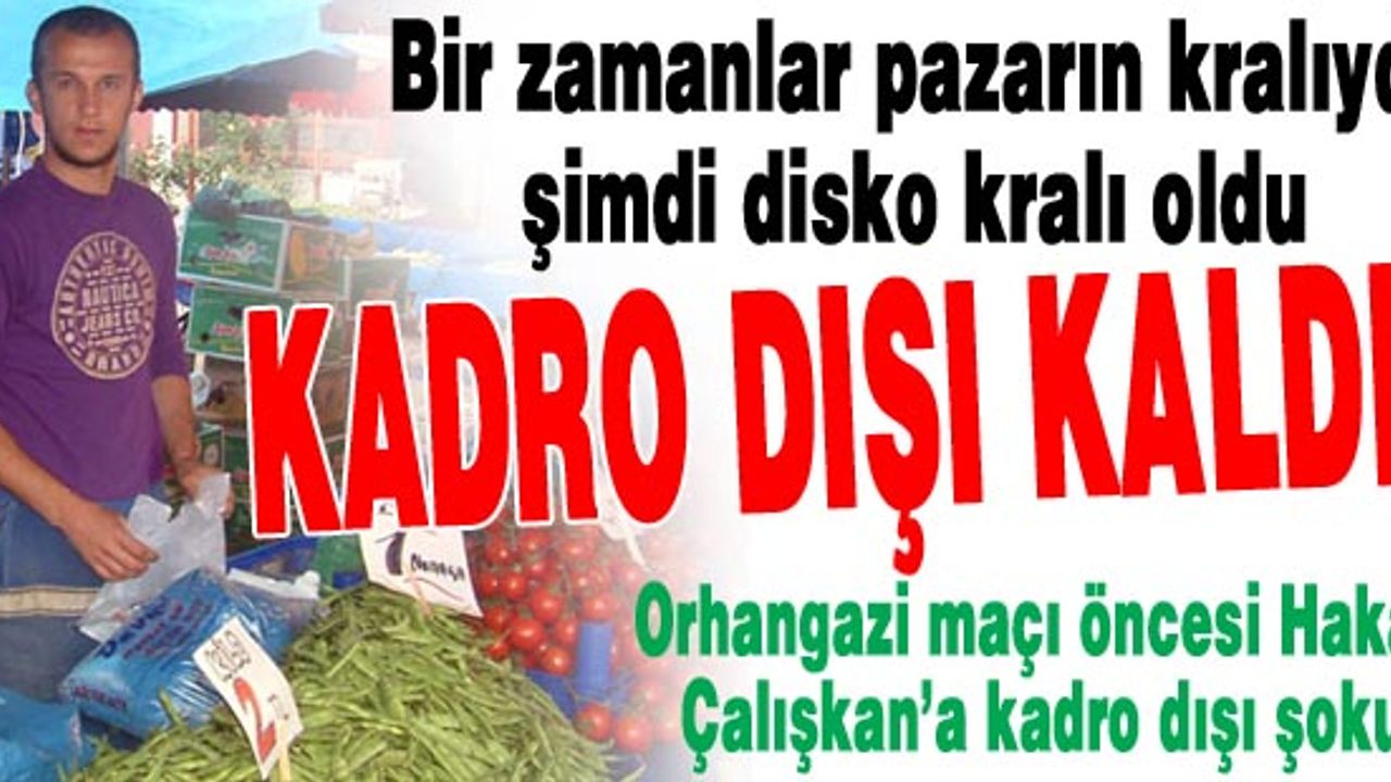 Sakaryaspor’un tecrübeli oyuncularından Hakan Çalışkan şok bir şekilde kadro dışı bırakıldı. Disiplinsiz hareketleri nedeniyle kadro dışı bırakıldığı söylenen Hakan’ın bu ikinci kadro dışı vakası. İlk olarak sezon başında yönetim ile yaşadığı sorunlar nedeniyle kadro dışı bırakılan Çalışkan’ın bu kez affedilmesinin zor olduğu belirtiliyor. Hakan’ın kadro dışı kalması ile ilgili aldığımız bilgilere göre tecrübeli oyuncunun geçtiğimiz çarşamba günü bir gece kulübünde görülmesi nedeniyle olayın teknik direktör Erol Kolcu’ya gittiği öğrenildi. Kolcu da oyuncusunu disiplinsiz hareketleri nedeniyle kadro dışı bıraktığı bilgisi alındı. Bir dönem baba mesliği olan pazarcılık yaptığı konusunda haberlere konu olan ve "Pazarın Kralı" yakıştırması yapılan Hakan Çalışkan, bu sezon ortaya koyduğu performansla da beğeni kazanmıştı. Hakan Çalışkan, kadro dışı kararıyla takımın yarın kendi sahasında oynayacağı Orhangazispor maçında forma giyemeyecek.