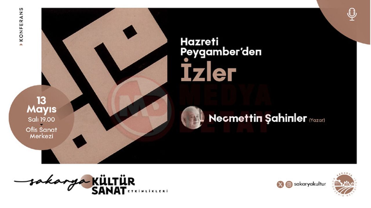 Sakaryalı sanat dostları OSM’de 13 Mayıs Salı günü 19.00’da gerçekleştirilecek olan “Hazreti Peygamberden İzler” isimli konferansta buluşacak. Programa yazar Necmettin Şahinler konuşmacı olarak katılacak.