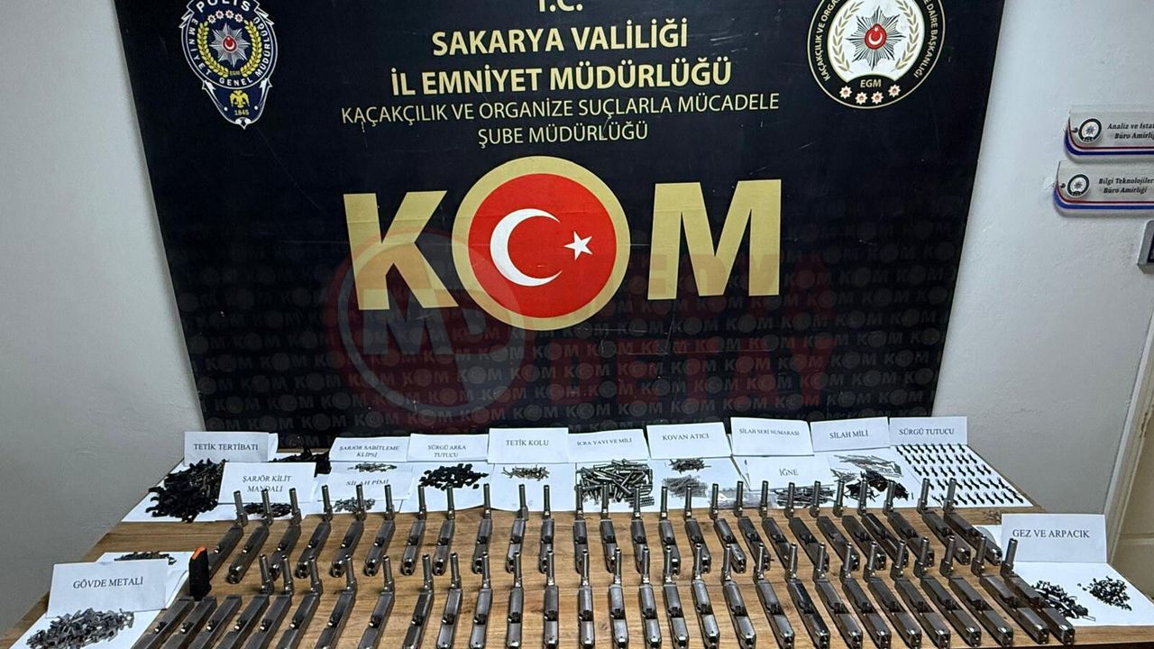 Araçta yapılan aramalarda arka iki kapısına zulalanmış şekilde 55 adet sürgü kapağı, 52 adet namlu, 46 adet sürgü tutucu, 45 adet icra mili ve yayı, 45 adet sürgü arka kapağı, 50 adet sürgü tutucu yayı, 44 adet gez, 74 adet arpacık, 235 adet silah mili, 44 adet iğne, 45 adet silah seri numarası, 42 adet gövde mandalı, 248 adet yay, 46 adet silah pimi, 45 adet kovan atıcı, 44 adet tetik kolu, 63 adet şarjör sabitleme klipsi, 55 adet sürgü tırnağı, 45 adet tetik, 44 adet tetik mekanizma metal bileşeni, 47 adet tetik mekanizma plastik bileşeni, 45 adet korkuluk ve 1 adet şarjör olmak üzere toplam 1.460 silah parçası ele geçirildi. Ele geçirilen parçalarla 55 tabanca yapılabileceği tespit edilirken, şüpheli N.K. sevk edildiği adli mercilerce tutuklandı. Emniyet yetkilileri, suç ve suçlularla mücadelelerinin kararlılıkla devam edeceğini duyurdu.