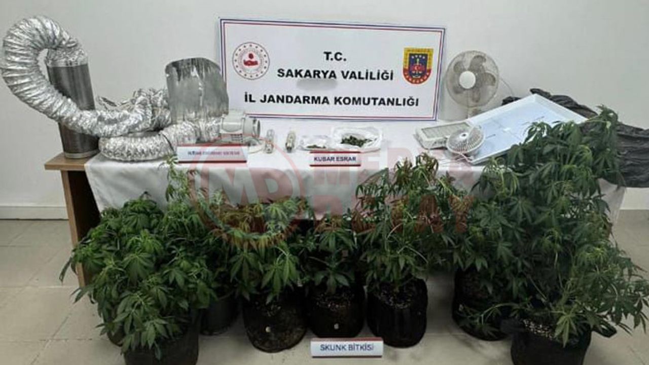 İl Jandarma Komutanlığı ekiplerince, uyuşturucu/uyarıcı madde imal ve ticareti yapan şahıslara yönelik mücadele kapsamında Hendek İlçesinde Cumhuriyet Savcılığının koordinesinde operasyon yapıldı. Operasyonda 9 kök skunk bitkisi, 2 parça halinde toplam 40 gram skunk maddesi, 1 adet iklimlendirme sistemi ele geçirildi. Olayla ilgili 1 şahıs gözaltına alınırken, çıkarıldığı mahkemece adli kontrol şartıyla serbest bırakıldı.