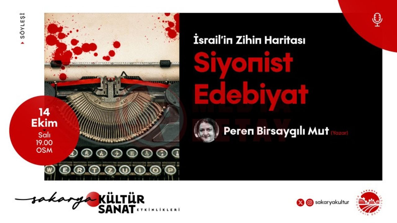 Sakarya Büyükşehir Belediyesi Kültür ve Sosyal İşler Dairesi Başkanlığı tarafından gerçekleştirilen kültür sanat etkinliklerinde Ekim takvimi “İsrail’in Zihin Haritası: Siyonist Edebiyat” söyleşisiyle devam edecek.