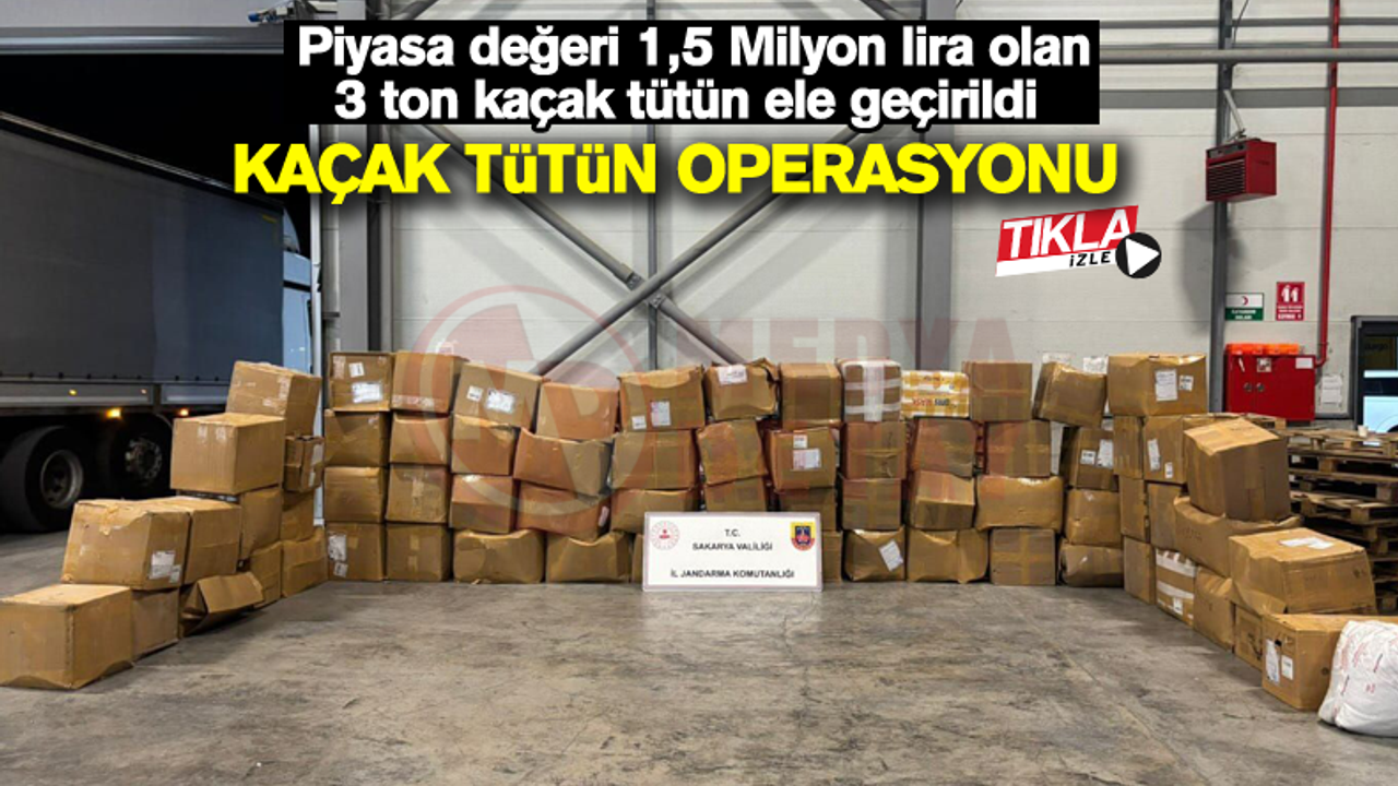 Akyazı ilçesi TEM otoyolu gişelerinde M.S.C (6) isimli şahısın kullandığı tır durdurularak, çekici ve dorsesinde arama yapıldı. Aramada, piyasa değeri yaklaşık 1,5 milyon TL olan 3.2 ton kıyılmış tütün ele geçirildi. Sürücü M.S.C. hakkında adli işlem başlatılırken, kaçak tütüne el konuldu.
