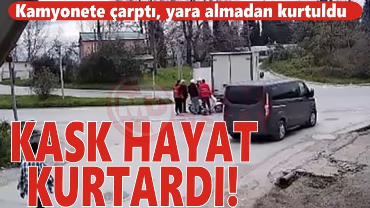 Kaza neticesinde motosiklet sürücüsü kafasını kamyonetin kasasına vurdu. Kafasında kaskı bulunan sürücü kazayı yara alamadan atlattı. Sürücünün durumun iyi olduğu öğrenilirken, kaza anı güvenlik kamerasına yansıdı.