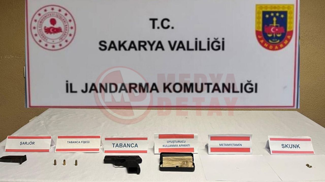 Jandarmanın Serdivan ilçesinde gerçekleştirdiği bir diğer operasyonda ise M.Z.Ö. (41) isimli şahsın üzerinde ve aracında arama yapıldı. Aramada, 1 parça halinde 1 gram olarak paketlenmiş metamfetamin maddesi,1 parça halinde 1 gram olarak paketlenmiş kubar esrar, 1 adet uyuşturucu kullanma aparatı, 1 adet 7,65 mm çapında tabanca, şarjör ve 3 adet fişek ele geçirildi.