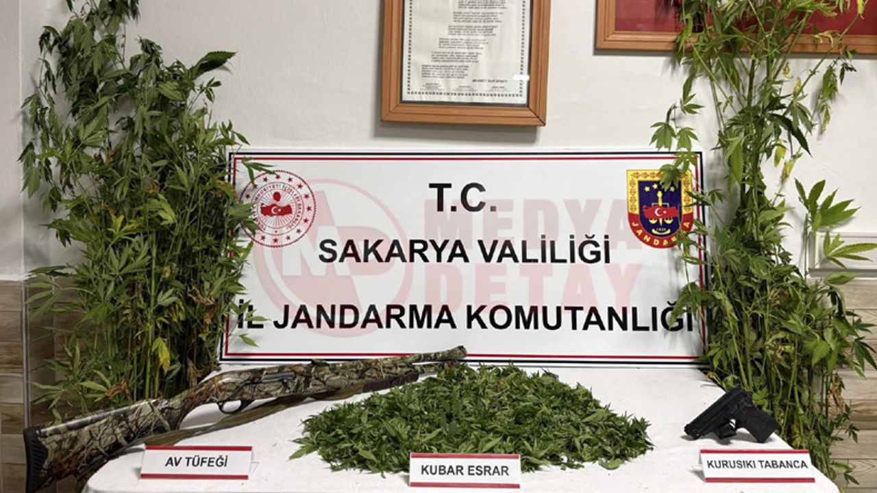 Sakarya İl Jandarma Komutanlığı ekipleri sorumluluk bölgesinde uyuşturucu ticaretinin önlenmesine yönelik çalışmalarına devam ediyor. Uyuşturucu ve kaçakçılıkla mücadele faaliyetleri çerçevesinde Karasu ilçesi Kızılcık Mahallesi’nde R.T. (55), isimli şahıs ormanlık araziye yasa dışı kenevir hasat etmek için gittiği esnada jandarma ekiplerine suçüstü yakalandı. Şahsın evinde yapılan aramalarda ise; 905 gram kubar esrar, 48 kök kenevir bitkisi, 1 adet av tüfeği ve 1 adet kurusıkı tabanca ele geçirildi. R.T. isimli şahıs işlemlerinin ardından sevk edildiği adli makamlarca tutuklanarak cezaevine gönderildi.