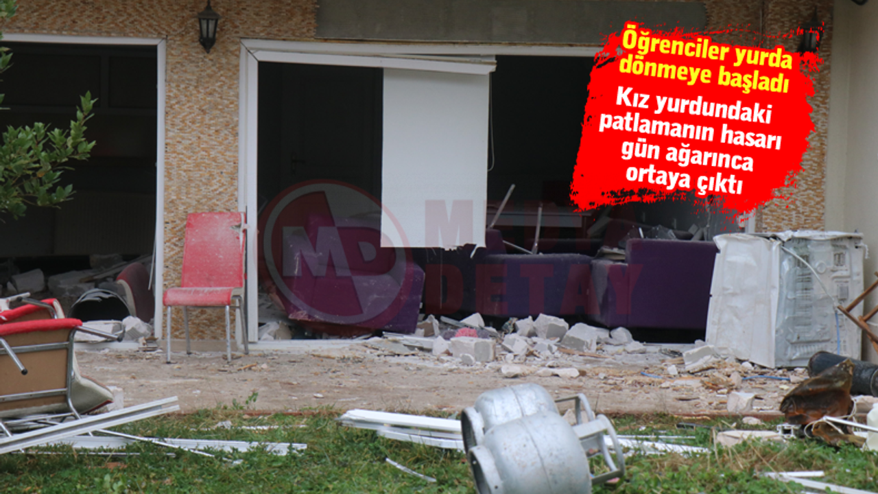 Yaşanan patlamanın şiddeti gündüz saatlerinde daha net görüldü. Patlamanın etkisiyle yurdun odadaki cam ve çerçevelerinin parçalandığı, eşyaların ise binanın bahçesine savrulduğu görüldü. Binanın dış cephesinde ve dinlenme odasında oluşan maddi hasar, gün ışığıyla birlikte kayıt altına alındı.