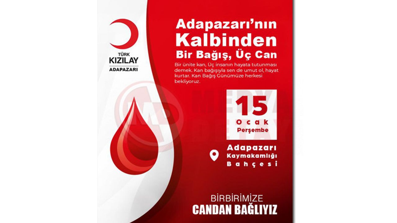 Türkiye Kızılay Derneği Adapazarı Şube Başkanlığından yapılan açıklamada, “Hayat kurtarmanın en kolay yollarından biri olan kan bağışı, her gün sayısız insan için umut olmaya devam etmektedir. Sürekli ihtiyaç duyulan kan ve kan ürünlerinin temini, ancak düzenli ve gönüllü bağışlarla mümkündür. Bu kapsamda, 15 Ocak 2026 tarihinde Adapazarı Kaymakamlığı bahçesinde mobil kan bağış noktası kurulacaktır. Tüm vatandaşlarımızı bu anlamlı etkinliğe katılarak kan bağışında bulunmaya davet ediyoruz.