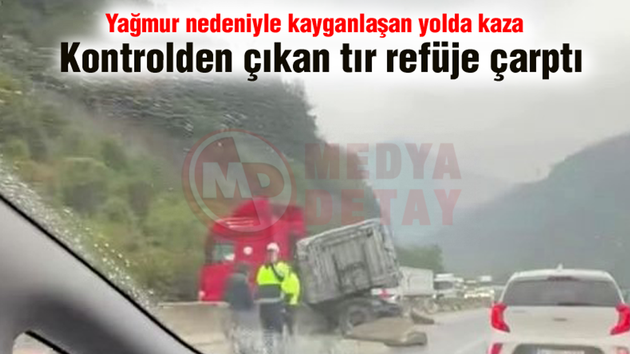 Sakarya-Bilecik D-650 karayolu Geyve ilçesi Örencik Mahallesi mevkiindeki Devebağırtan virajında meydana gelen kazada, yağmur nedeniyle kayganlaşan yolda kontrolden çıkan tır, orta refüje çarparak makasladı. Maddi hasarın meydana geldiği kaza nedeniyle karayolunda ulaşım bir süre durdu. Trafiğin tek şeritten kontrollü şekilde sağlandığı yolda ulaşım, tırın kaldırılmasıyla normale döndü.