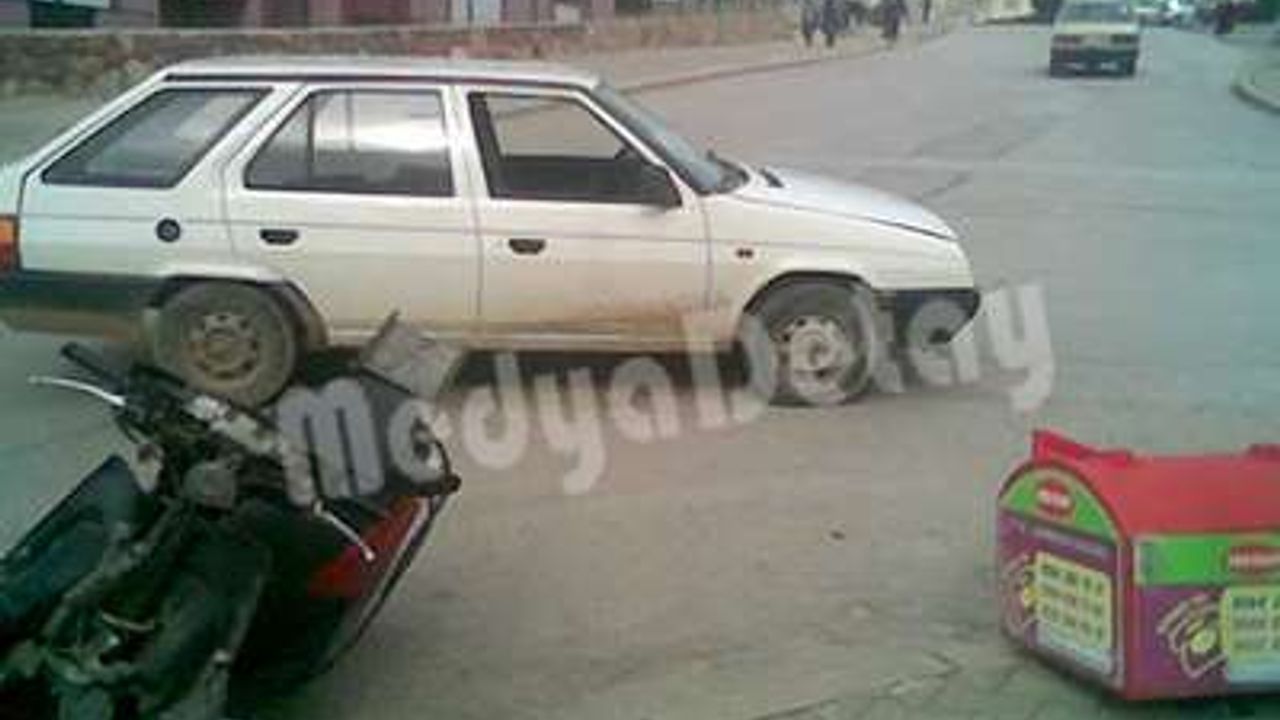 Edinilen bilgilere göre, yeni yerleşim bölgesi Korucuk Mahallesinde öğle saatlerinde meydana gelen trafik kazasında, yan yoldan hızla gelen ve açık kimliği öğrenilemeyen Ömer (18) isimli sürürcünün kullandığı 54 FP 521 plakalı motosikletle, N.G (35) idaresindeki 54 EA 305 plakalı otomobil çarpıştı.