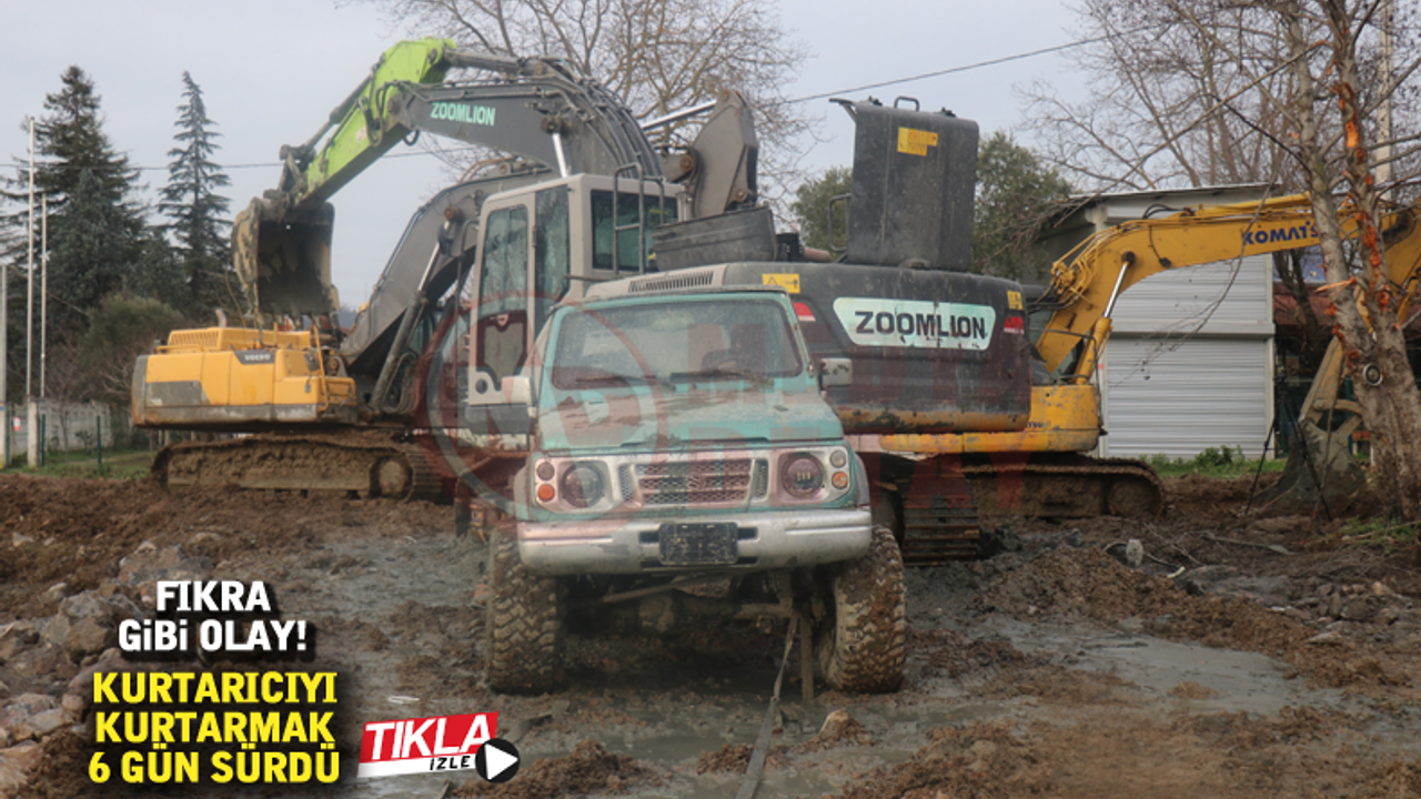 Edinilen bilgiye göre, Sapanca ilçesinde yaşanan olayda, yeni aldığı aracıyla deneme sürüşü yapan sürücü, aracın balçığa saplanması üzerine yardım çağırdı. Bölgeye sevk edilen 4 tonluk iş makinesi, kurtarma çalışması sırasında çamura gömüldü. Bunun üzerine bölgeye sırasıyla 14 ve 22 tonluk iki iş makinesi daha yönlendirildi. Zeminin yumuşak olması nedeniyle yardıma gelen iş makinelerinin de bataklığa saplanması üzerine bölgede kapsamlı çalışma başlatıldı.
