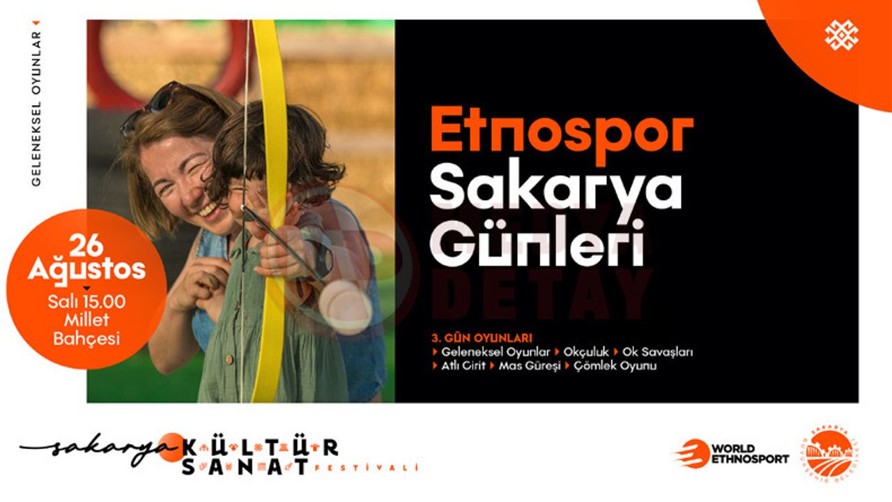Salı günü ilk etkinlik15.00’da Etnospor Sakarya Günleriyle başlayacak. Gün boyunca düzenlenecek çeşitli geleneksel oyun ve yarışmaların yanı sıra okçuluk ve atlı ciritle kültür mirası yeniden hatırlanacak.