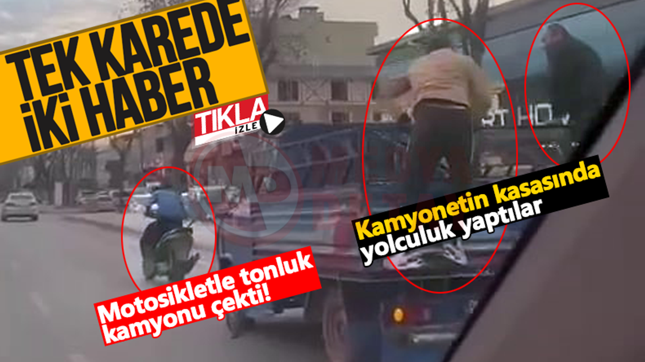 Edinilen bilgilere göre Sakarya Caddesi’nde düşük hacimli motosikletin, tonluk kamyoneti çektiği anlar adeta akıllara durgunluk verdi.