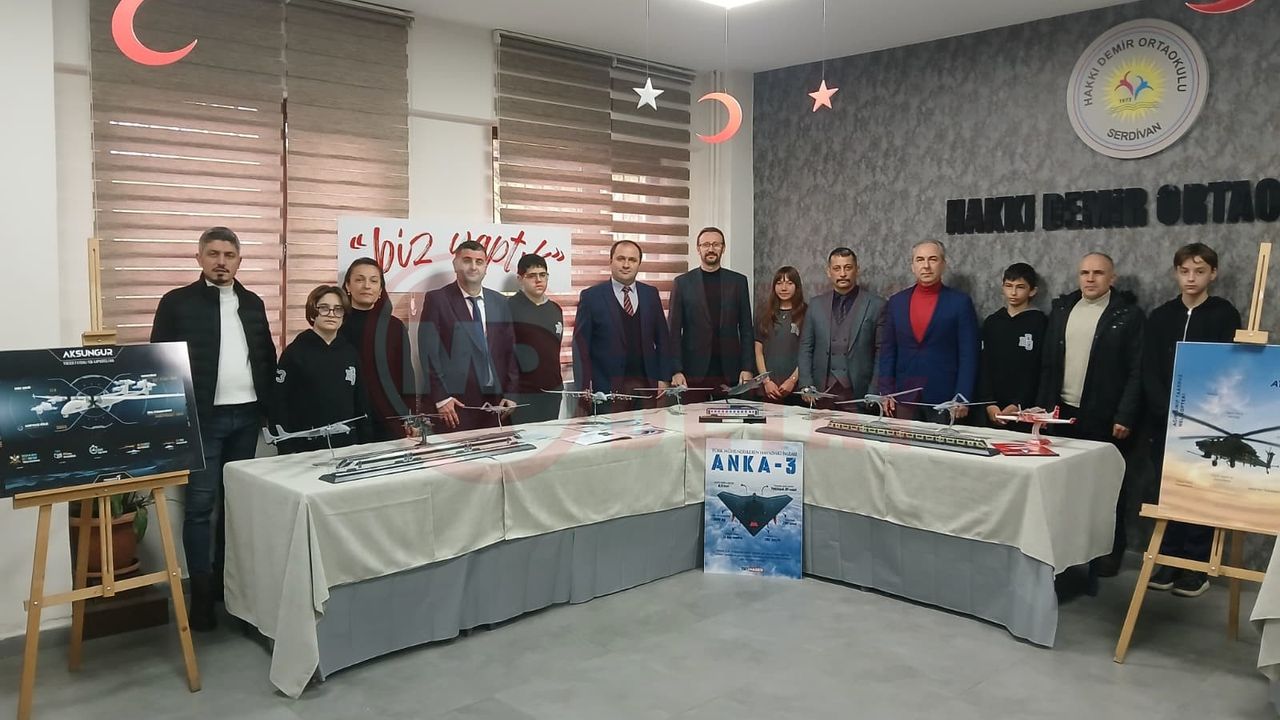 Serdivan İlçe Milli Eğitim Şube Müdürü Fatih Güney, okul müdürleri, öğretmenler ve öğrencilerin birlikte açılışını gerçekleştirdiği “Biz Yaptık’ sergisiyle ilgili bilgi veren Hakkı Demir Ortaokulu Müdürü Mesut Gürel, sergilerine destek veren Türasaş’a, Aselsana’a Baykar’a, Tüvasaş’a ve diğer milli üreticilerimize sonsuz şükranlarını sundu. Büyük emeklerle hazırladıkları sergide çağ kapatıp çağ açan bir milletin çocukları olarak, hem yerel ürünlerimize sahip çıktıklarını, hem de kara-hava-deniz araç-gereç ve unsurları ile 21. yüzyılın önderleri olmaya aday olduklarını ifade ederek, yaptıklarımızın yapacaklarımızın teminatı olduğunu vurguladı. Çocuklarımızın da “biz yaptık, yapmaya devam edeceğiz.” gururu ve ilhamıyla daha gayretli ve özverili çalışacaklarına ve aldıkları bayrağı daha da ileri taşıyacaklarına güvendiklerini dile getirdi. Hakkı Demir Ortaokulu yönetici ve öğretmenlerinin örnek ev sahipliği gösterdiği sergide ülkemizin gurur kaynağı yerli ve milli ürünlerimizin yanısıra Ebru ve Çini sanatlarımızla ilgili örnek uygulamalar büyük beğeni gördü.