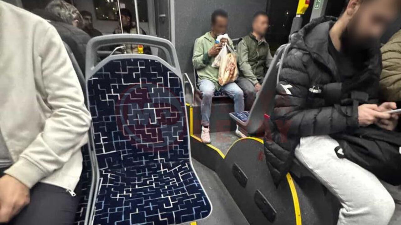 Şahsın rahat tavırları başka bir yolcu tarafından cep telefonu kamerasıyla görüntülendi.