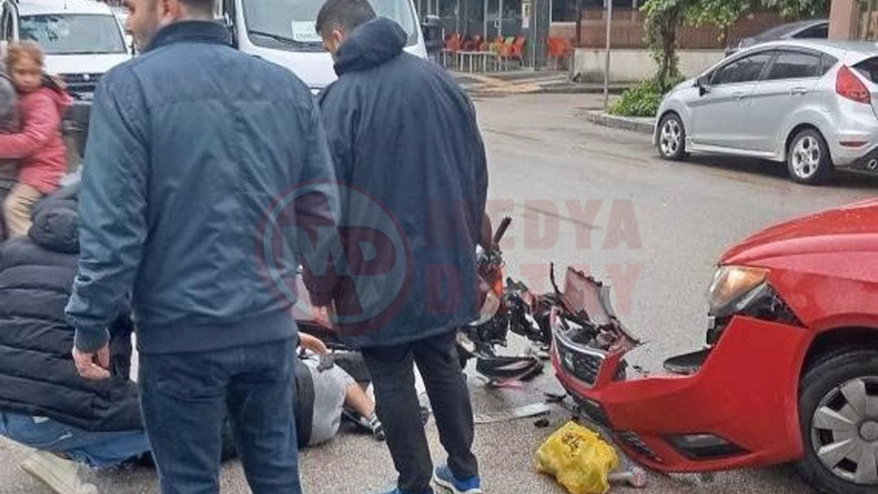 Adapazarı ilçesi Eser Okulu önünde meydana gelen olayda, sürücü isimleri öğrenilemeyen motosiklet ile otomobil, kafa kafaya çarpıştı.