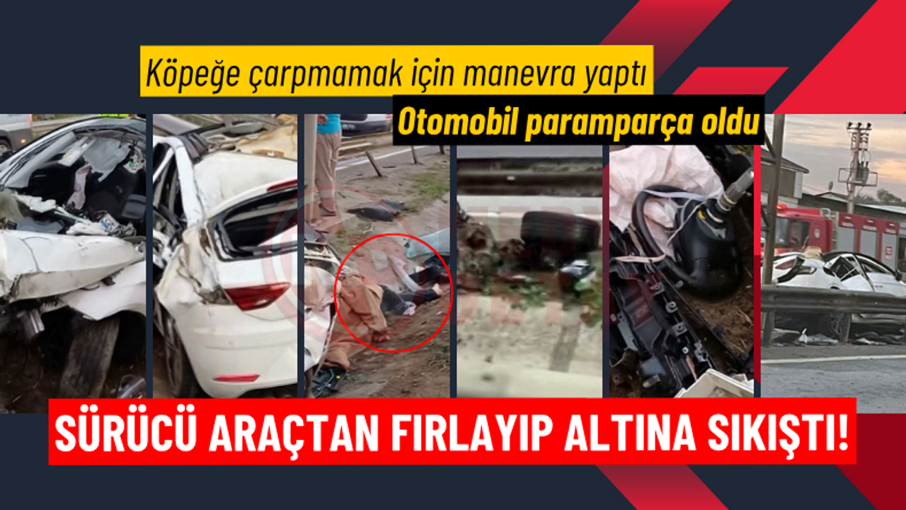 Savrulan otomobil, orta refüje girerek bariyerleri biçti, ardından aydınlatma direğini de devirerek paramparça oldu. Çarpmanın şiddetiyle sürücü araçtan dışarı fırladı ve adeta kağıt gibi ezilen otomobilin altına sıkıştı.