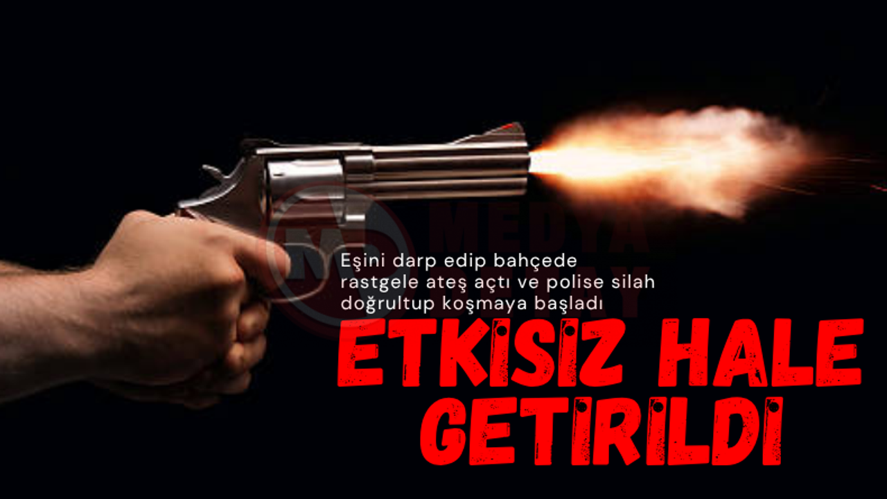 EŞİNİ DARP EDİP POLİSE SİLAH ÇEKTİ
