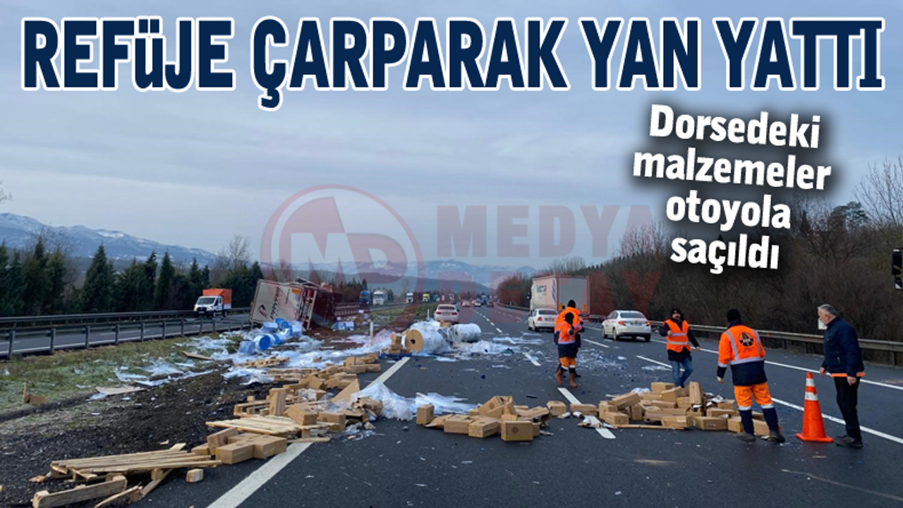 Kaza, Otoyolun İstanbul istikameti Hendek ilçesi İkbaliye Mahallesi mevkiinde meydana geldi. C.D. idaresindeki 27 AUH 322 plakalı tır, kontrolden çıkarak refüje çarpıp yan yattı. Kazada sürücü C.D. yaralandı. İhbar üzerine olay yerine sağlık, itfaiye ve jandarma ekipleri sevk edildi. Yaralı, ilk müdahalenin ardından hastaneye kaldırıldı.