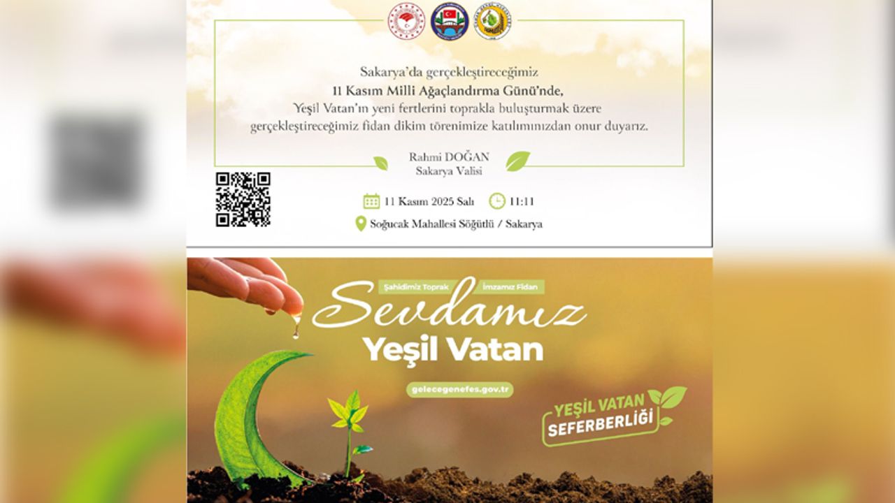 Tarım ve Orman Bakanlığı koordinasyonunda, Sakarya Orman Bölge Müdürlüğü öncülüğünde yürütülen "Yeşil Vatan Seferberliği" çerçevesinde 11 Kasım Milli Ağaçlandırma Günü’nde Sakarya’da geniş katılımlı bir fidan dikim etkinliği düzenlenecek.