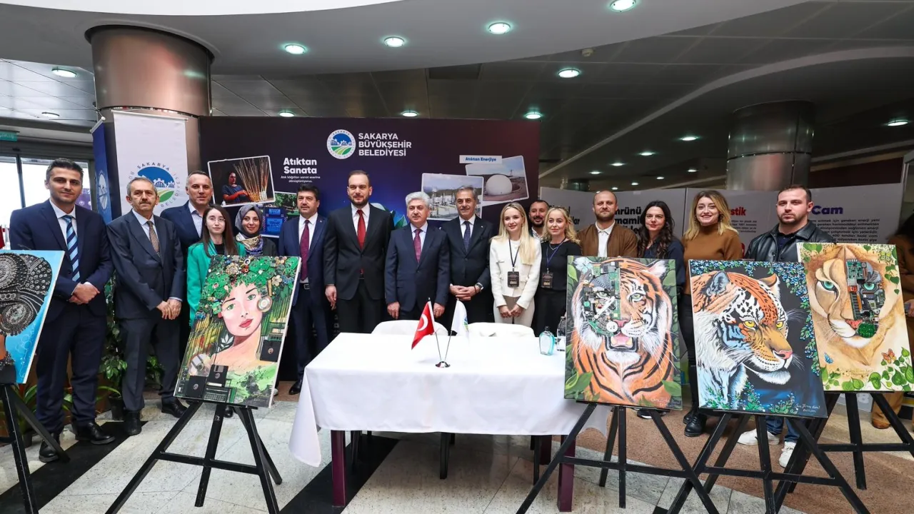 Sakarya Üniversitesi (SAÜ) Turgut Özal Kültür ve Kongre Merkezi'nde gerçekleştirilen programda Alemdar, katılımcılarla birlikte sıfır atık sergisini gezerek bilgi aldı.