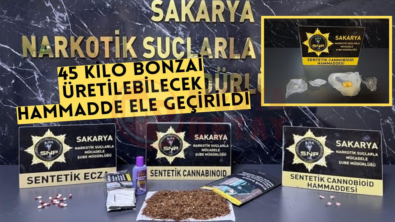 Sakarya Cumhuriyet Başsavcılığı’nın koordinesinde gerçekleştirilen operasyonda, Adapazarı ve Akyazı ilçelerinde 3 kişi yakalandı. Emniyet güçlerinin aramalarında 200 adet içi boş makaron, 120 gram aseton, 115 gram tütün, 15,20 gram sentetik cannabinoid hammaddesi ve 13 adet sentetik ecza maddesi ele geçirildi. Yakalanan şüpheliler adli mercilerce tutuklanırken, yetkililer suç ve suçlularla mücadeleye kararlılıkla devam edeceklerini belirtti.