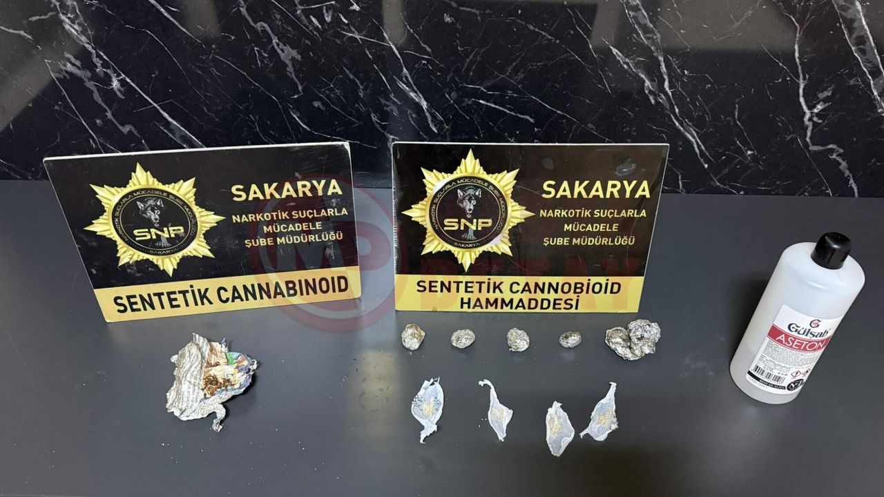 Sakarya Cumhuriyet Başsavcılığı koordinesinde, İl Emniyet Müdürlüğü Narkotik Suçlarla Mücadele Şube Müdürlüğü ekiplerince Adapazarı ve Erenler ilçelerinde gerçekleştirilen iki ayrı operasyonda 2 şüpheli yakalandı. Şüphelilerin adreslerinde yapılan aramalarda 18 bin adet sentetik ecza maddesi, 9 parça halinde 72 gram A-M 2201 sentetik kannabinoid hammaddesi (216 kilo bonzai üretiminde kullanılabilecek miktarda), 270 gram aseton, 0,94 gram sentetik kannabinoid ve uyuşturucu paketlemede kullanıldığı değerlendirilen çeşitli materyaller ele geçirildi.