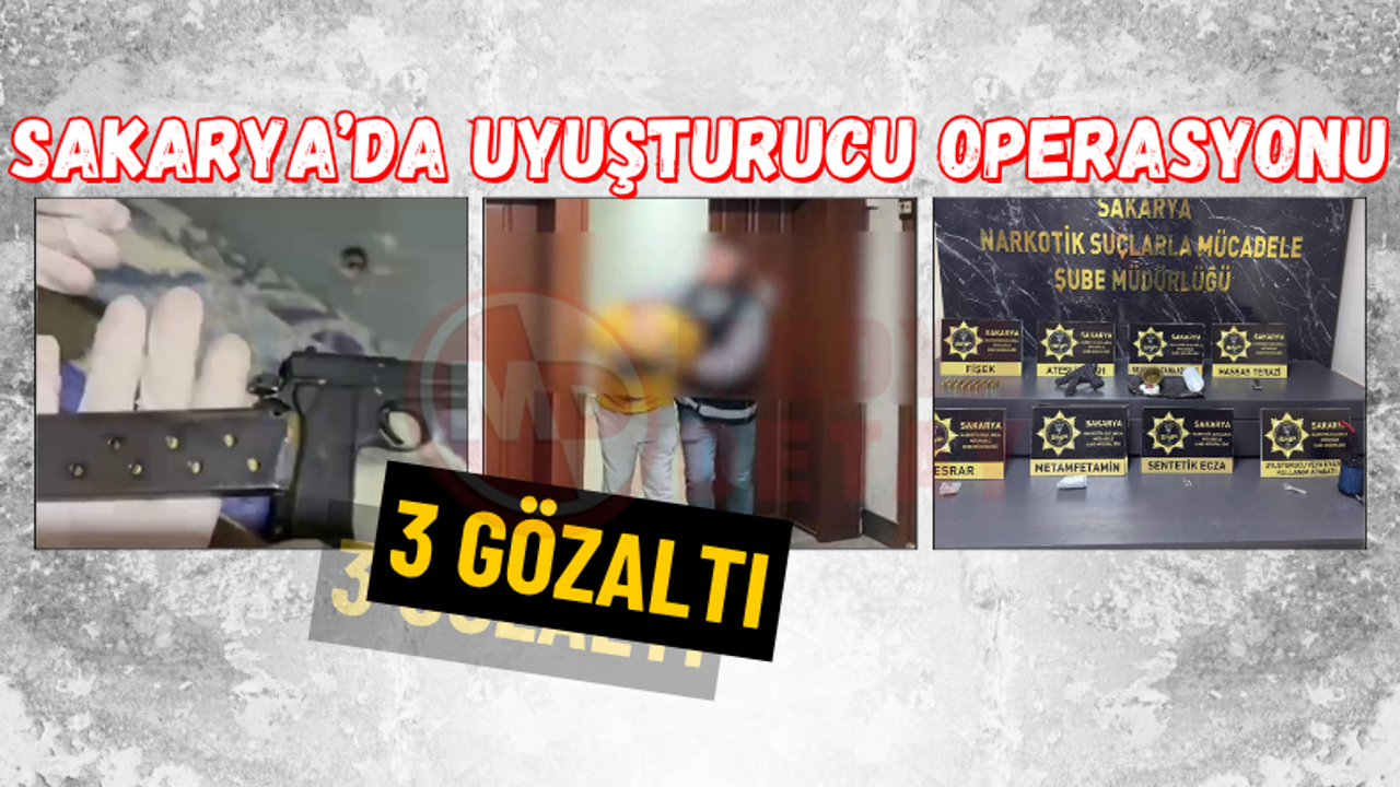 Sakarya Cumhuriyet Başsavcılığının koordinesinde, Sakarya İl Emniyet Müdürlüğü ekiplerince Adapazarı ilçesinde yapılan çalışmalarda İ.T. (41), B.T. (28) ve O.T. (35) isimli şüphelilerin üstlerinde ikametlerinde ve İ.T. isimli şüpheliye ait işyerinde yapılan aramalarda, 140 gram sentetik cannabinoid (bonzai) maddesi, 1 adet 150 gram bonzai yapımında kullanılmış aseton, 1.10 gram esrar maddesi, 0.30 gram metamfetamin maddesi, 4 adet sentetik ecza maddesi, 1 adet hassas terazi, 2 adet uyuşturucu madde kullanma aparatı, 1 adet ruhsatsız tabanca, 36 adet fişek ele geçirildi.
