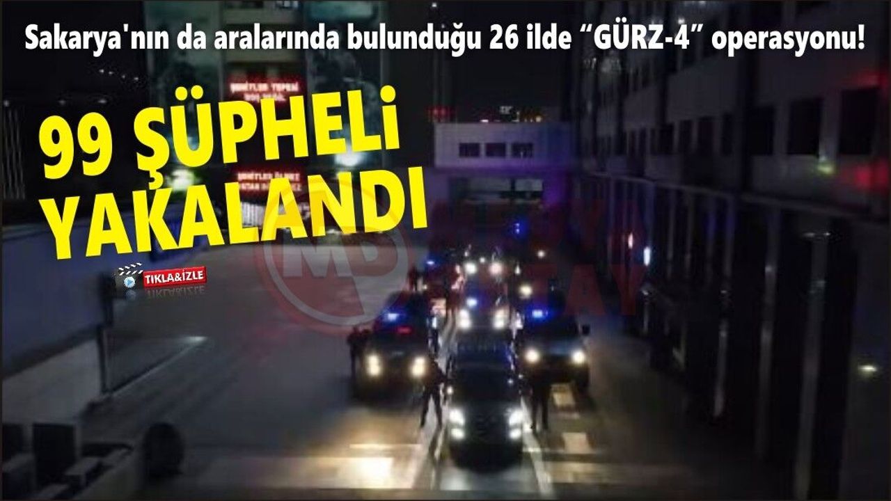 İçişleri Bakanı Ali Yerlikaya, Sakarya'nın da aralarında bulunduğu 26 ilde “GÜRZ-4” operasyonu gerçekleştirdiklerini belirterek, "3 gündür devam eden “GÜRZ-4” operasyonlarında 99 şüpheli yakalandı!" dedi.