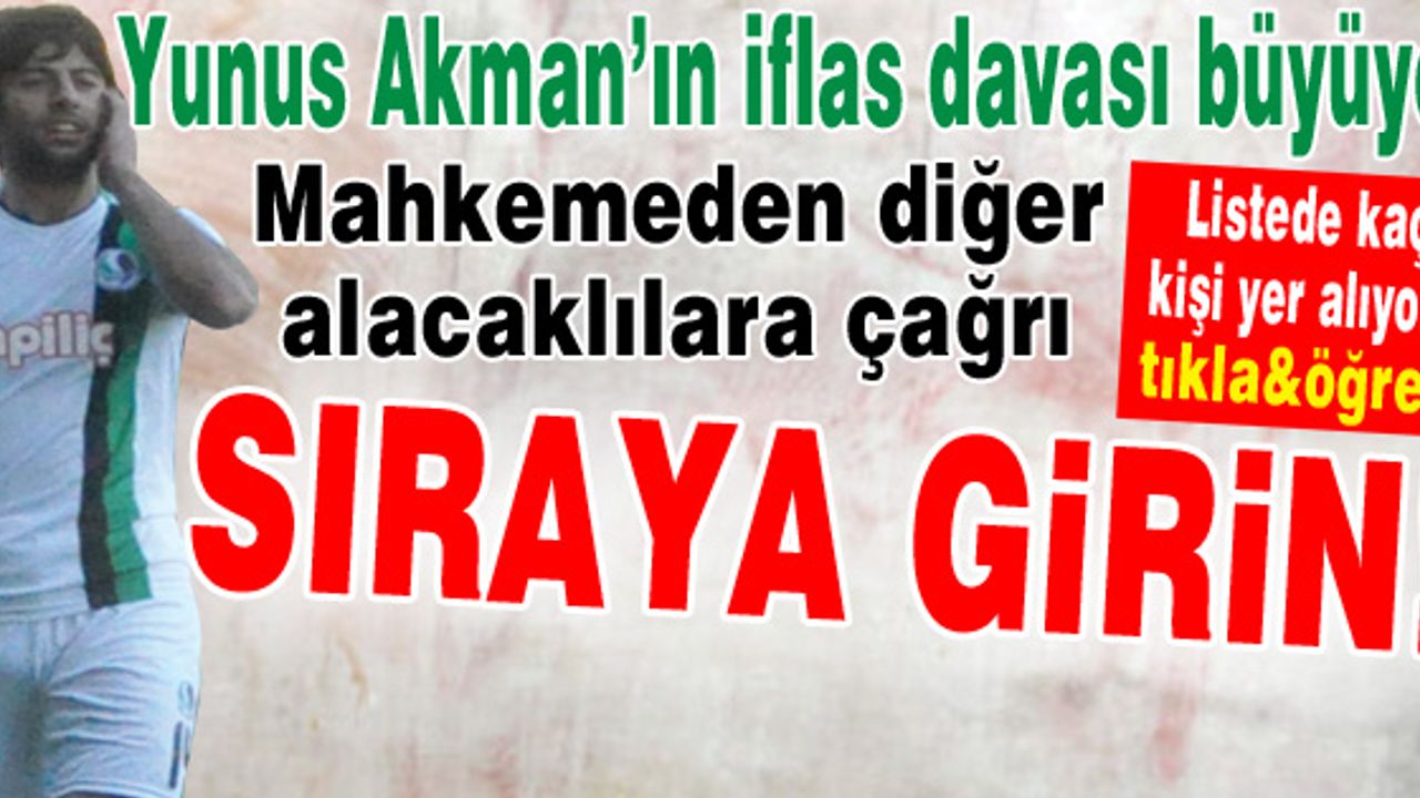 Yunus'un iflas davasını görüşen Ticaret Mahkemesi, Sakaryaspor'dan alacağı bulunan herkese çağrıda bulundu. Bu gelişme sonrası mahkeme tarafından alacaklılara 15 gün süre verildi.