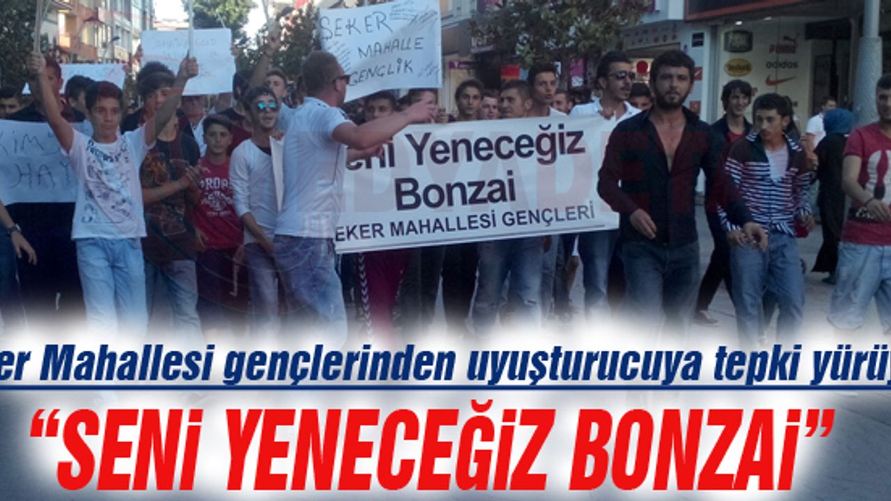 Adapazarı Şeker Mahallesi’nde oturan gençler tarafından düzenlenen yürüyüş, Çark Caddesi’nin başında başladı. Ellerinde, “Seni yeneceğiz bonzai” yazılı pankart taşıyan gençler, “Sakarya’da bonzai istemiyoruz” şeklinde slogan attılar.